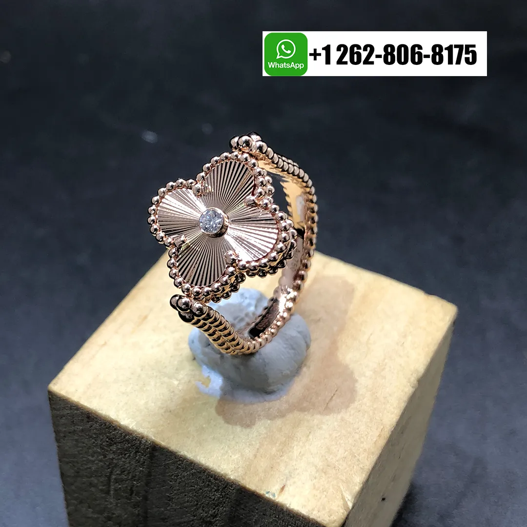 Home / Van Cleef & Arpels / Van Cleef & Arpels Ring / Van Cleef & Arpels Vintage Alhambra Reversible Ring Carnelian and Diamond Guilloche 18K Rose Gold VCARP7U500