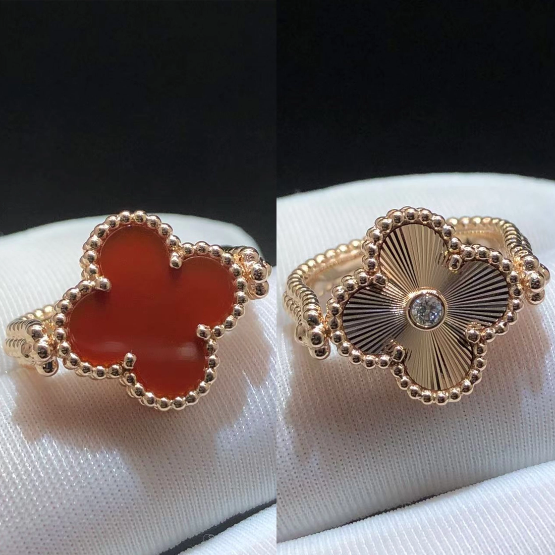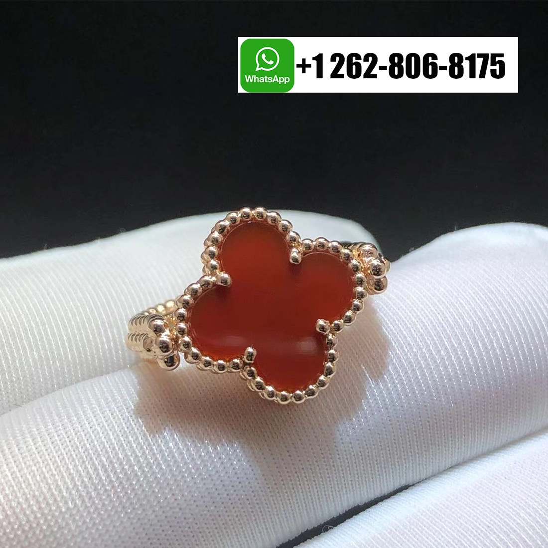 100% exactly same as authentic VCA Vintage Alhambra Reversible Ring, natural carnelian, Same Hallmark. You get what you see!